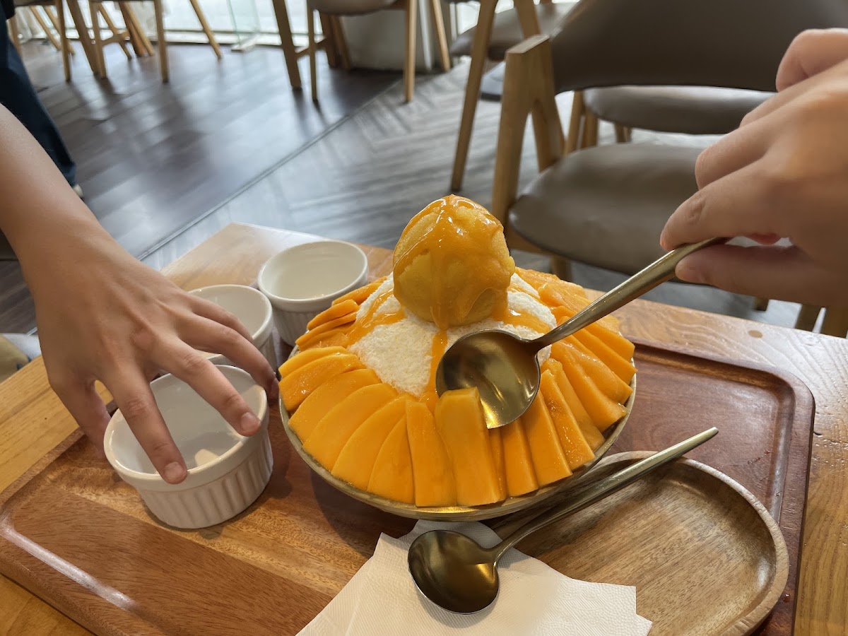 The menu is a delightful journey through the world of sweetness, with a variety of pastries and desserts that are as visually appealing as they are delicious. Indulge in their renowned croffles – a perfect fusion of croissants and waffles, crisp on the outside and fluffy within. Don't miss out on the bingsu, which has become a highlight for customers like Trang Trieu who have declared it simply “BUSSIN!” This icy treat, paired with the perfect mango sorbet, is both refreshing and satisfying without being overly sweet.